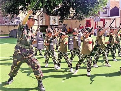 立正 近日,鲤南幼儿园大班段开展了“报告!南幼‘新兵’请求入列”军训活动。 稍息、立正、跨立、四面转法、整理着装,小士兵们一次又一次地重复着口令动作,每个动作小士兵们都做得无比认真。战术持枪、警棍盾牌操、高低姿匍匐等特色科目训练中,孩子们化身小小战士,他们认真学习不同技能,探索新奇知识,在多元体验中拓宽视野,挖掘自身潜能,为军训生活增添了别样色彩。