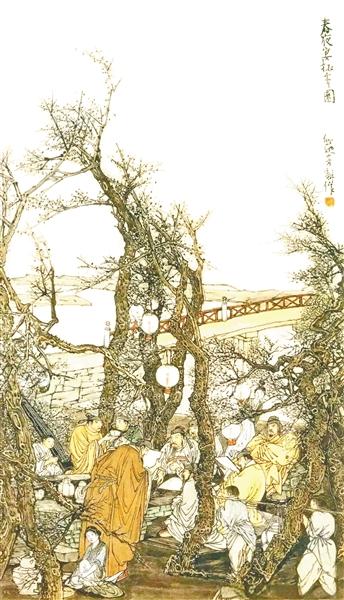 《春夜宴桃李园》 木兰溪奔流不息,孕育仙游灿烂文明。度尾镇中岳村,曾走出一位与齐白石并称“北齐南李”的 画坛巨匠——李耕。这位集文人画、职业画与民间画特质于一身的艺术大师,用一生笔墨为仙游国画艺术注入灵魂,更以“李耕画派”的薪火传承,在中国画史上写下浓墨重彩的篇章—— 今年是李耕诞辰140周年,由县委宣传部、县文旅局主办,福建博物院、仙游县博物馆、仙游李耕国画艺术研究院联合承办的“一笑娑婆自在天——李耕诞辰140周年纪念展”10月24日在福建博物院启幕,并将持续至2026年1月3日。展览中,李耕的《达摩渡江图》《皆大欢喜图轴》《东坡笠屐图轴》《卖炭翁图轴》等70余件(套)经典佳作悉数亮相,透过这些珍贵的佳作,让我们共同回望一代大师深厚的艺术造诣与薪火传承。 1 乡野筑基 画坛崛起的传奇人生 1885年,李耕生于仙游县度尾镇一个贫寒的民间绘画世家,原名李实坚,字砚农,号一琴道人。祖父李泰系与父亲李墀的壁画技艺,是他最早的艺术启蒙。七岁时,他便能以木炭描摹莆仙戏舞台人物,笔触间已见灵性。童年的他随父奔波于乡野寺庙,绘制丹青绣像与壁画,那些穿梭于梁柱间的线条,早已融入他的血脉。 将中国古代典籍的传统故事转换为艺术形象,是李耕尝试绘画艺术的根基,当地秀才邱明奎、张立夫赏识其才华,授以古典文学与书法,让他得以在笔墨之外,涵养诗文底蕴。他师法上官周、黄慎等先贤,更远溯顾恺之、吴道子的艺术精髓,主张“效先贤、严法度、坚基础、师造化、脱窠臼、创新意”,在传统沃土中汲取养分。 1925年,李耕的《弥勒佛》在东南五省画展中摘得桂冠,同年他与李霞、陈子奋等创办福建现代首个艺术团体——龙珠画社,为闽派艺术播撒火种。1928年中法绘画联展上,《东坡笠履图》《秋雨归帆》再度夺魁,徐悲鸿在《申报》盛赞:“有以奇拙胜者,首推李君耕,挥毫恣肆,可以追踪瘿瓢,其才则中原所无。”这份赞誉,成为他跻身全国画坛的重要标志。 新中国成立后,李耕迎来艺术生涯的新高峰。1959年,省政府批准成立“李耕国画研究所”,他亲任导师,培育出蒋金读、周秀廷等一批名家。1960年,他为人民大会堂国宾厅创作巨屏《松青鹤白东方红》,笔墨间的雄浑气象享誉京城。直至 1964年辞世,他始终以笔为刃、以画为心,将 320幅珍藏作品悉数捐献给国家,践行着“画为人民”的誓言。 2 熔古铸今 独树一帜的绘画特质 李耕的绘画艺术,恰似木兰溪水般兼具灵动与厚重,在题材、笔墨与风格上形成鲜明特色。他擅长古典人物、山水花鸟,兼通金石雕塑,更以诗书画印的全面修养,成就“国之瑰宝、画坛之光”的盛誉。 在题材选择上,李耕始终扎根文化土壤与时代现实。他笔下的仙佛高士如《达摩》《麻姑献寿》,汲取仙游寺庙壁画与民俗养分,鲜活灵动;特殊年代里,他以《钟馗图》题诗“豹目虎须君莫厌,予今人面更狰狞”,辛辣讽刺时政;用《难民图》寄托“中原风景不摧残”的忧思,将艺术与家国命运紧密相连,蕴爱国情怀,这种题材的广度与深度,让他的作品兼具审美价值与思想力量。 此外,李耕的《上古神话》《苏武牧羊》等作品也取材于中国传统故事。通过这些主题创作,李耕将东方历史画叙事传统与士人精神传统对接,构建起兼具现代国家意识与传统伦理价值的表达范式。 在笔墨技法上,李耕达到了“雄健恣肆”与“精妙传神”的统一。他兼具黄慎的纵逸与吴道子的刚劲,寥寥数笔便能勾勒人物神韵。《东坡笠履图》中,苏轼的蓑衣纹理以干笔皴擦,笠帽轮廓用湿墨晕染,干湿浓淡间尽显人物风骨,将文人画的雅致与民间画的质朴完美融合。 李耕善用夸张变形凸显人物性格,弥勒佛的大腹便便、东方朔的诙谐灵动,皆在比例重构中更显神韵。他的构图大胆多变,《十八学士登瀛洲》以错落有致的人物排布营造空间层次,背景山水则简笔点染,主次分明间尽显章法之妙。这种“形神兼备、意趣相生”的创作理念,成为其艺术的鲜明标识。 3 德艺双馨 光照后世的精神品格 李耕的伟大,不仅在于画艺精湛,更在于其“画品即人品”的精神坚守。这位从乡野走出的大师,始终保持着淳厚质朴的本性,更以强烈的正义感与家国情怀,诠释着艺术家的担当。 李耕的清高品格在处世中尽显。国民党旅长求画时,他绘弥勒佛旁孩童戏钱,题诗“皆大欢喜总是钱,莫将钱眼打秋千”,以辛辣笔触讽刺权贵。而对普通百姓,他却常常慷慨赠画,甚至为贫寒学子免费授课。抗战时期,他接连创作《戚继光扫倭寇》《花木兰》等作品,以艺术振奋民心;新中国成立后,他又挥毫绘制《东圳水库》,讴歌人民改造自然的壮举,用笔墨书写时代变迁。 李耕的精神更体现在对艺术传承的执着。他深知“独木不成林”,1959年创立国画研究所后,将毕生技法倾囊相授。弟子周秀廷曾回忆道,先生授课时必讲“画要见心,心要见善”,要求弟子既要练笔墨功夫,更要修品德修为。这种“传艺先传德”的教育理念,让李耕画派不仅延续着技法血脉,更传承着精神基因。他生前常说:“艺术当为天地立心,为生民立命”,这份信念贯穿其一生,也成为后世敬仰的精神标杆。 4 寻根立派 仙游画派的薪火绵延 仙游画派自明代李在、吴彬开宗,经近代李霞、李耕、黄羲等宗师发扬,形成独具闽中特色的艺术流派,成为中国画坛重要的地域符号。其艺术特点鲜明而厚