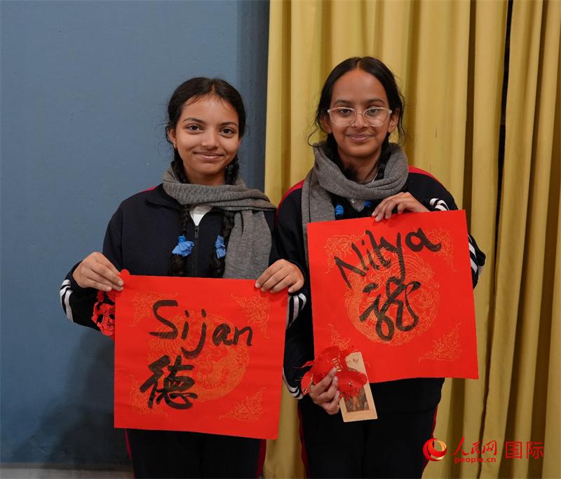 尼泊尔学生体验书法艺术。人民网记者 李墨摄