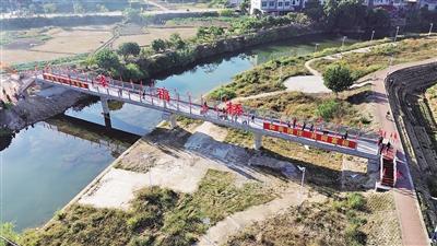 幸福桥(航拍) 上月30日,园庄镇举行幸福桥通行仪式,这座横跨枫慈溪的民生桥梁正式投入使用,改善了园庄、霞山、枫林、大埔等5个村居群众的出行条件。 据了解,幸福桥由县交通局承建,全长64.68米、宽4米,项目总投资100余万元,其中包括社会各界爱心人士捐款21万余元。大桥开通后,周边群众前往镇中心的通行时间从20分钟缩短至5分钟,结束溪两岸群众“隔河望路”、绕行不便的历史。同时,也为当地农产品短途转运打通“最后一公里”,为沿线特色农业与乡村旅游发展注入新动能。 作为园庄镇深化闽台乡建乡创合作的标志性成果,幸福桥自启动起便坚持高标准规划、高质量建设。2024年,园庄镇被列入省级闽台乡建乡创合作样板集镇,台湾建筑师设计团队入驻开展田野调查,深入挖掘当地历史文化与特色资源,量身打造设计方案。在幸福桥项目中,团队将“以人为本、生态宜居、文化融合”理念融入设计,注重桥梁与周边景观融合、桥头小微空间营造,使其不仅成为交通枢纽,更成为点缀田园、承载乡愁的新景观。 |