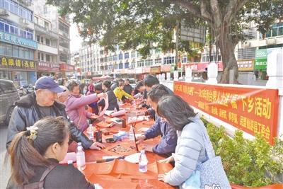 书写送“福” 新春将至,岁寒情暖。1月29日,县委统战部(侨办)联合县侨联、县台联、民盟仙游县工委会等共同开展“侨心向党三春暖,两岸同心共迎春”——2026年侨台界人士送“福”下乡活动,为基层群众书写春联、赠送福字,凝聚两岸亲情,传递新春祝福。 活动当天,由县书法家协会和侨台界书画界人士等组成的服务团队,先后走进龙华镇貂峰村“远峰厝”和枫亭镇汽车站,现场书写并送出春联300余副、“福”字100余张。侨界书画界人士邱瑞华笑着对记者说:“能用笔墨为乡亲们增添年味,把侨胞的祝福带回家,特别有意义。”尽管风一阵阵地狂啸,但市民们的热情丝毫不减,现场热闹而有序,手捧春联前来“沾福气、领春联”的市民纷纷感慨,这手写的春联比买的更有温度,感觉年味儿一下子就浓了。 活动期间,服务团队一行还走访了龙华镇老归侨,耐心倾听乡亲们的生活状况,将带着祝福的春联送到他们手中。 活动不仅营造了欢乐喜庆、文明和谐的迎春氛围,更进一步增进侨台界人士与基层群众的感情交流,展现两岸同胞同根同源、共迎新春的深厚情谊。下一步,我县将继续发挥桥梁纽带作用,开展形式多样、内容丰富的暖侨心、聚侨力活动,共同画好团结奋斗的最大同心圆。 |