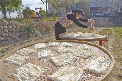 阳光正好,2月4日,在大济镇乌石村,一位农妇正在门前的农田里晒宽面(如图)。宽宽薄薄的面晒好了,就是仙游人喜爱的“面千”。 刚刚做好的宽面条还湿润且柔韧。经过一到两天的晾晒,慢慢收干水分,就会变得干脆,且便于储存。市面上有许多种面,机器轧的,固然齐整;馆子里大师傅做的,定然美味,但都没有这一道被阳光透彻晒过的“魂”。 面晒好了,便能安稳地收存许久。待到想吃时取一把下锅,清水白雾间,浸透了一整个晴天的味道,让这碗面有了最简单也最踏实的暖意。