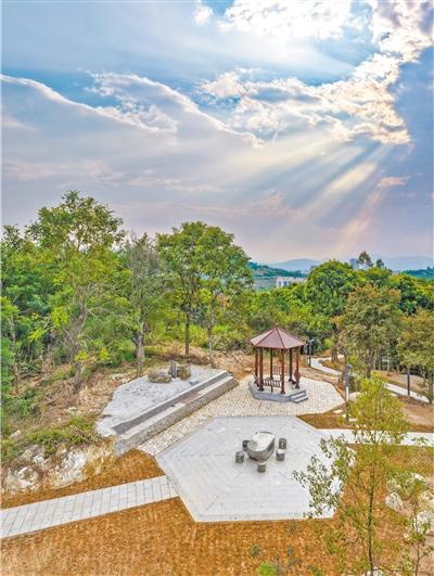 连日来,我县提升城市宜居品质的重点民生工程——贵峰路口袋公园项目初具规模,已进入工程收尾阶段,预计4月中旬将竣工投用。 4月6日上午,记者走进项目施工现场看到,公园内基础设施已基本成型(如图):2公里长的石板步游道铺设平整、错落有致;4座古色古香的休息凉亭点缀山间;160盏造型简约的路灯整齐排列,既兼顾实用性与美观度,又与周边环境和谐相融。几名工人正沿着步游道两侧有序开展绿植栽种作业,摆放苗木、培土浇水,一抹抹新绿正悄然绽放,为公园注入生机。 据了解,位于鲤城街道鲤北片区的贵峰路口袋公园项目总投资约500万元,以“生态优先、便民利民”为原则,着力打造功能完善、环境优美、贴近群众的城市休闲公园。项目建成后,将为周边居民打造一个集休闲、健身、游玩于一体的绿色公共空间,进一步拓展城市绿色版图。